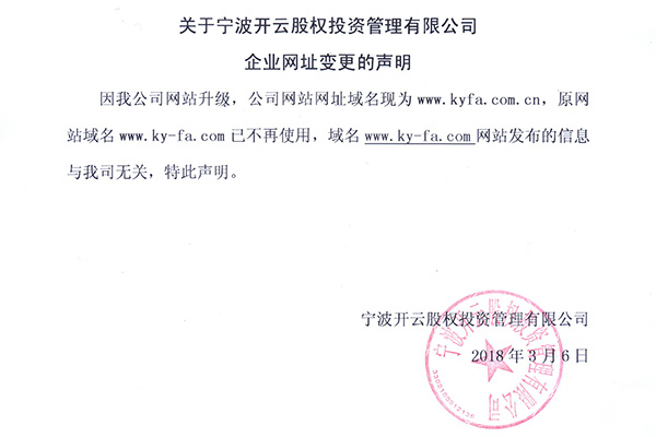 关于宁波开云股权投资管理有限公司企业网址变更的声明